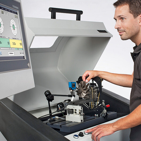 The TBcomfort creates the basis for a high-quality overhaul: In the first step the initial unbalance of the components and the mounted rotor assembly is secured. This lays the foundations for the subsequent high-speed balancing. Turbocharger components and rotor assemblies weighing up to 16 kg can be perfectly balanced on the TBcomfort. Due to its wide weight range, it is also possible to balance turbochargers of commercial and construction vehicles or marine engines. The function of all components is safe, easily understandable and often self-explanatory. The operation of the TBcomfort can therefore be mastered after only a short time.
